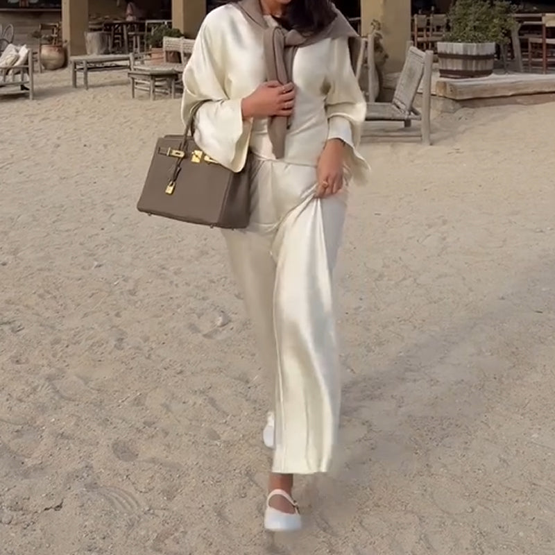 1 * Elegant Long Sleeve Top and Wide Leg Pants Set (Top+ Pants)