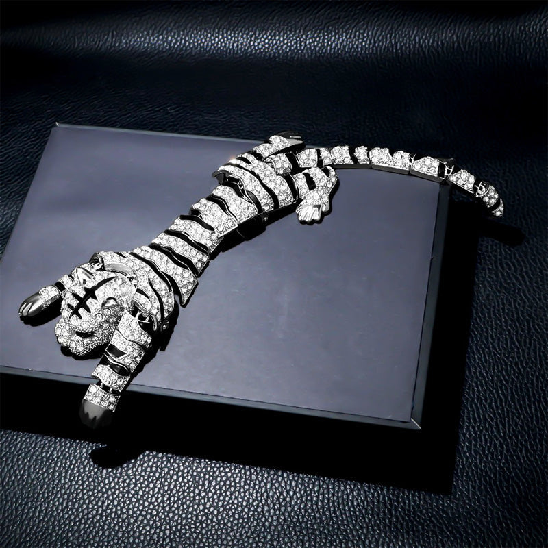 FLEXIBLE TAIL MOVEMENT: The tiger's tail is crafted with flexible joints, allowing it to move gracefully as you do. This unique detail adds dynamic flair and sophistication.