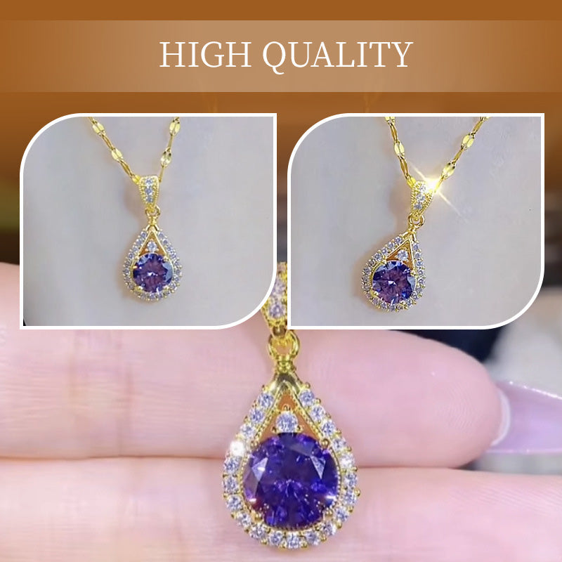 Package Includes: 1 * Exquisite Purple Waterdrop Cubic Zirconia Pendant Necklece