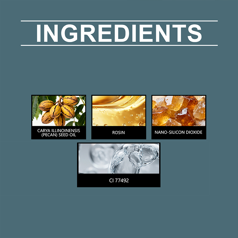 Ingredients:Carya Illnoinensis, Rosin, Nano-Silicon Dioxide, CI 77492