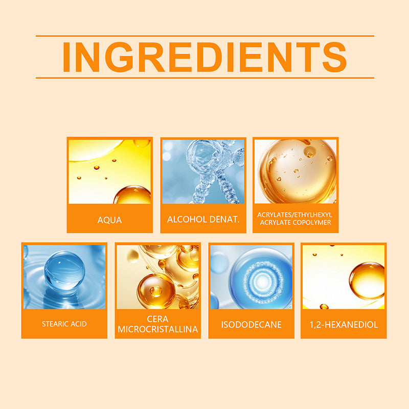 Material: Water, Acrylates/Ethylhexyl Acrylate Copolymer, Stearic Acid, Microcrystalline Wax, Isododecane, 1,2-Hexanediol